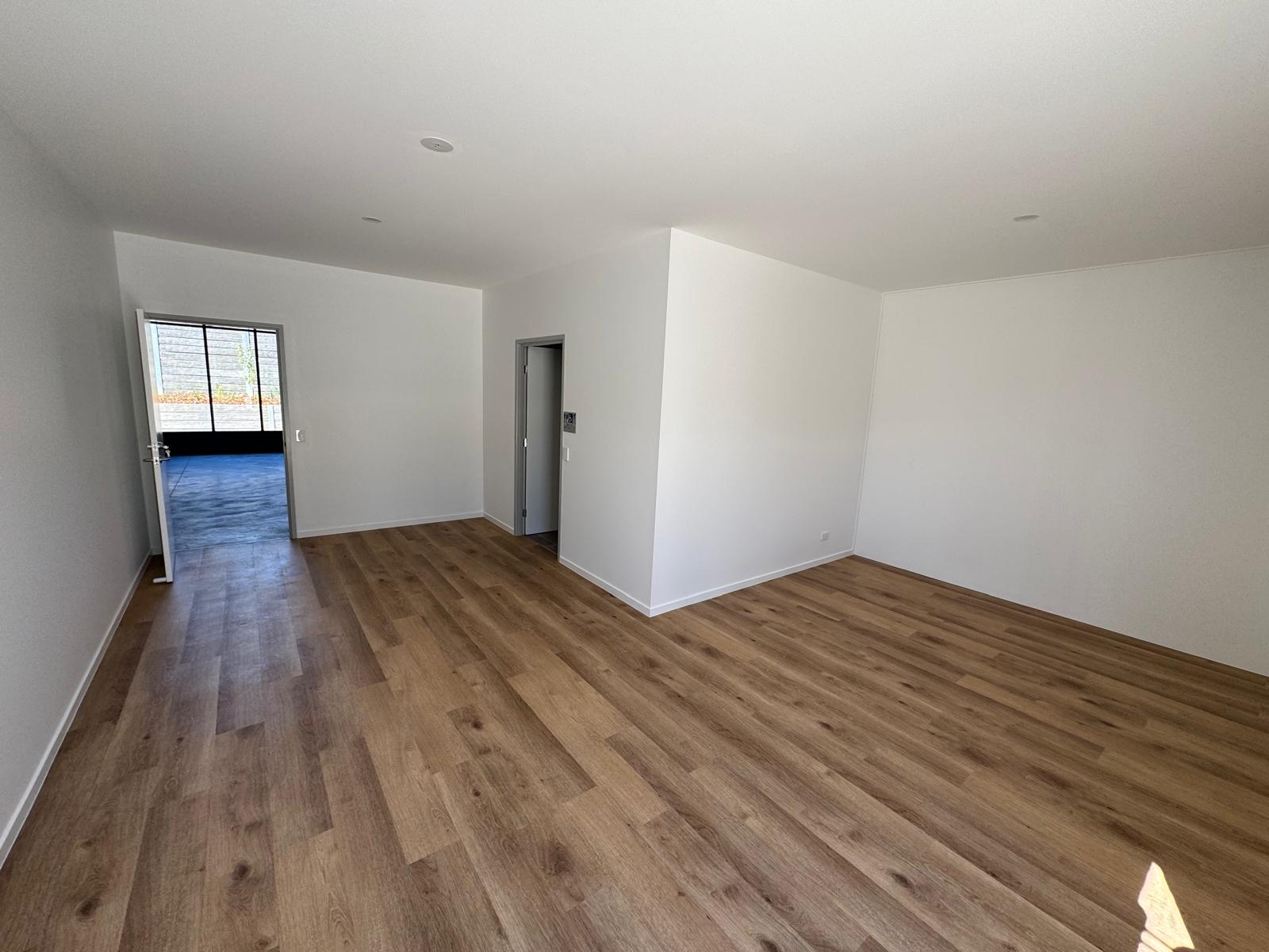 Fresh timber‑look plank flooring – no dusty concrete boots here